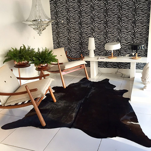 O tapete em pele natural super diferenciado, patchwork 50x50, trouxe ainda mais sofisticação para a sala.