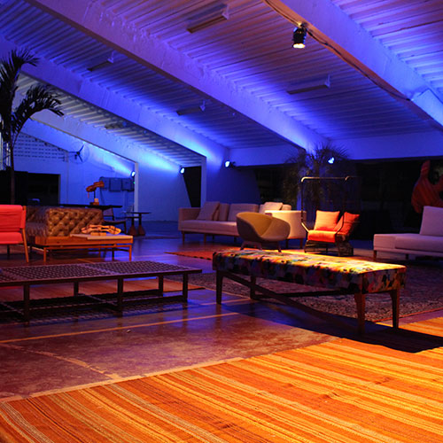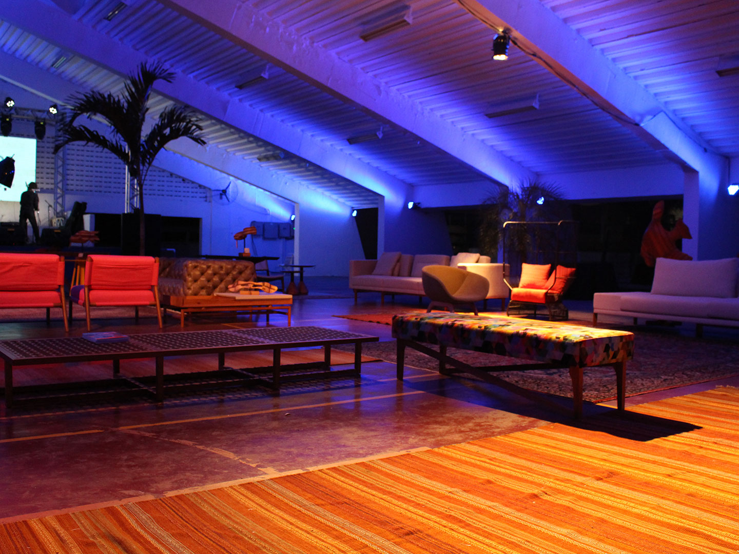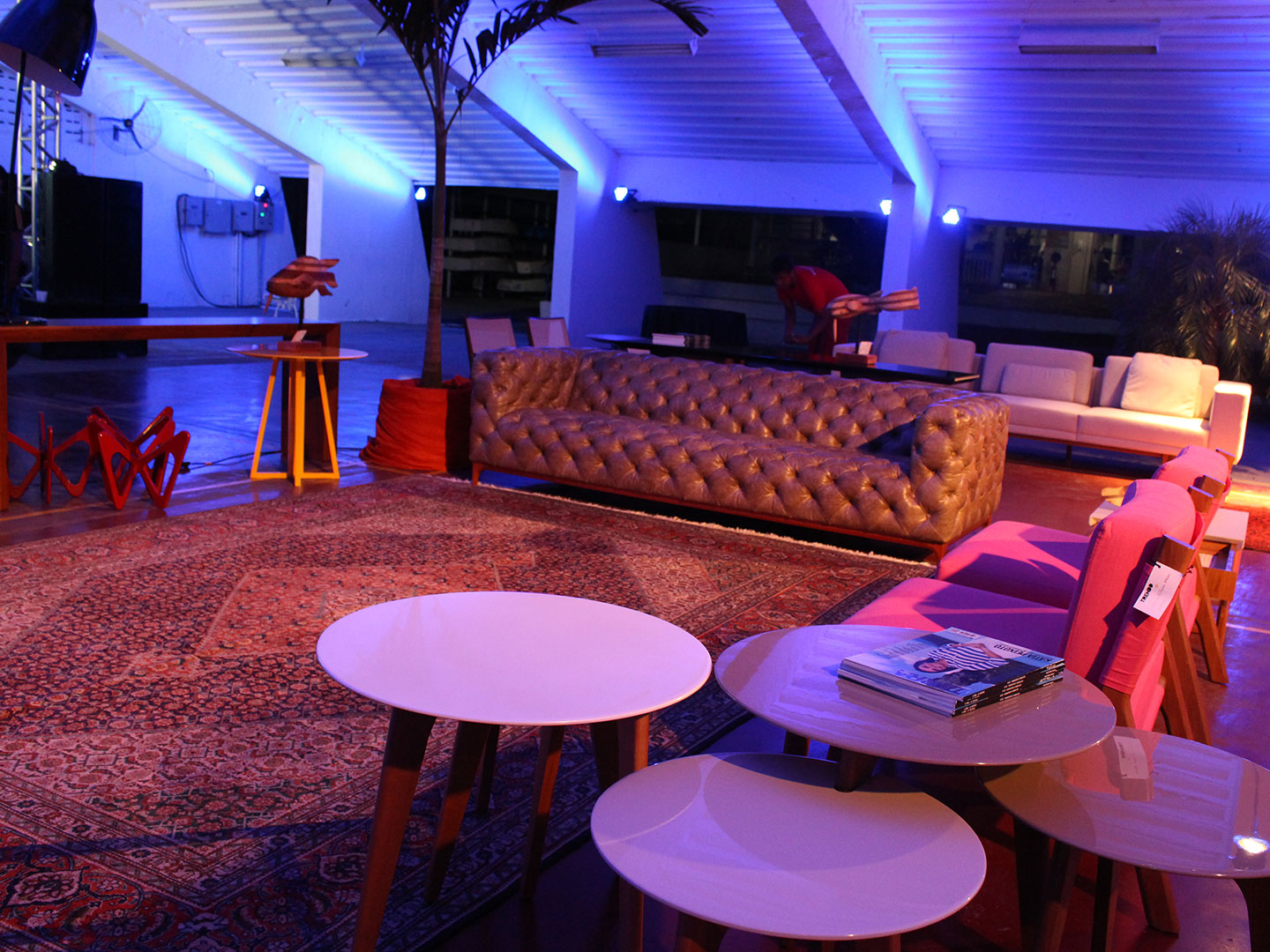 Ambientação de lounge em evento de lançamento de nova edição da Revista Terra Magazine. Projeto Poligonus Arquitetura.